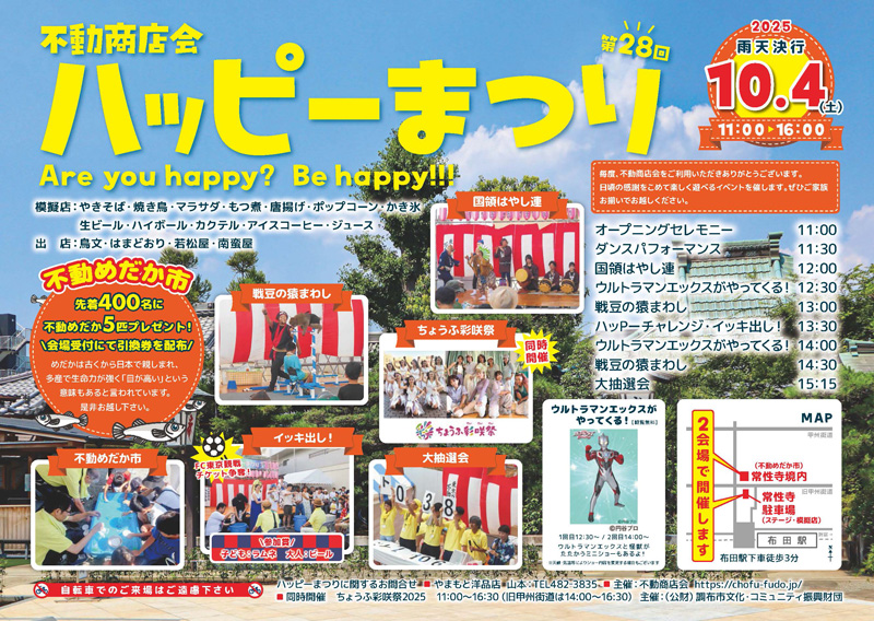 常性寺様境内では不動めだか市を、常性寺様駐車場ではステージや模擬店を行います。